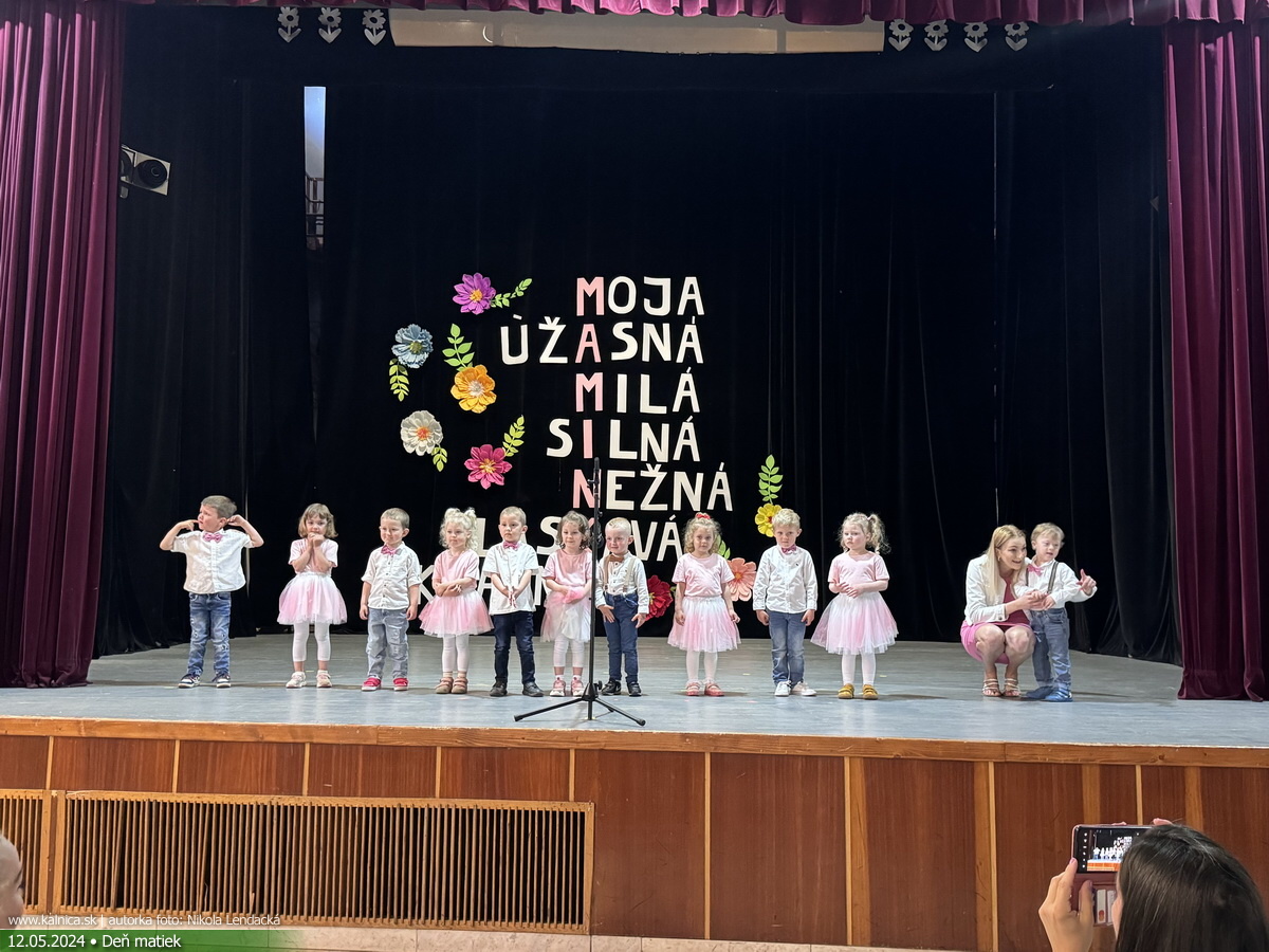 Vystúpenie detí zo ZŠ s MŠ Kálnica, ktoré sa uskutočnilo pri príležitosti oslavy Dňa matiek v KD Kálnica v nedeľu 12. 5. 2024 o 14:00 hod.