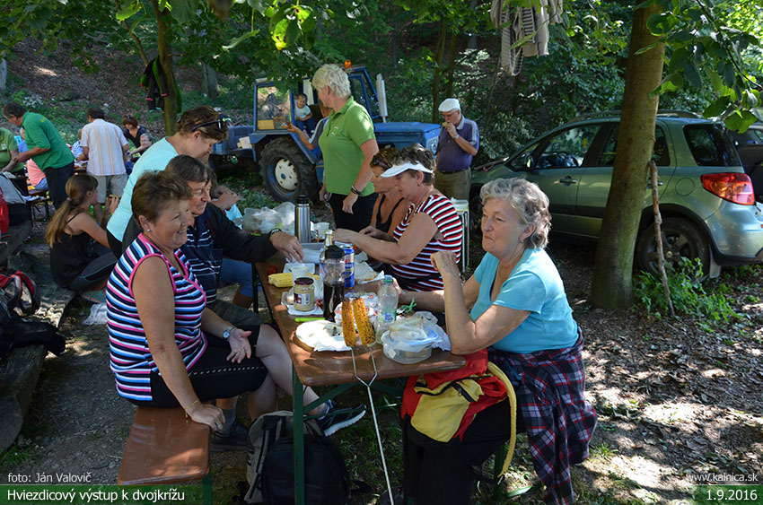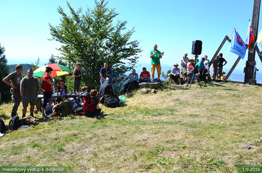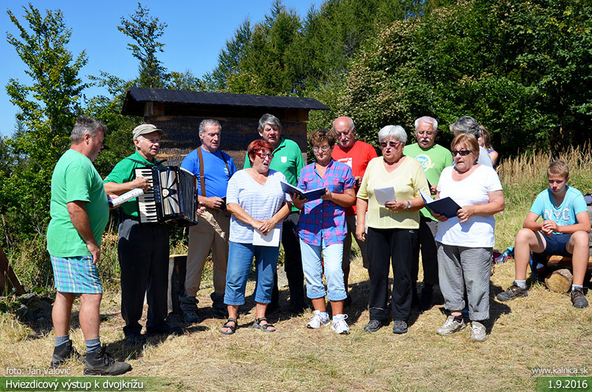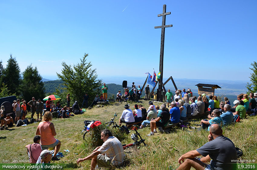 Obec Kálnica, turistický oddiel a Miestna organizácia Matice slovenskej už tradične, organizovali dňa 1. septembra 2016, hviezdicový turistický výstup k Slovenskému dvojkrížu pod Ostrým vrchom v Považskom Inovci. Účastníkom boli odovzdané i pamätné listy, program podujatia v prekrásnej scenérii prírody pokračoval posedením a opekačkou z vlastných zásob pri turistickej útulni na Izbe vzdialenej od kríža cca 500 m. Foto: Ján Valovič a Martin Benák